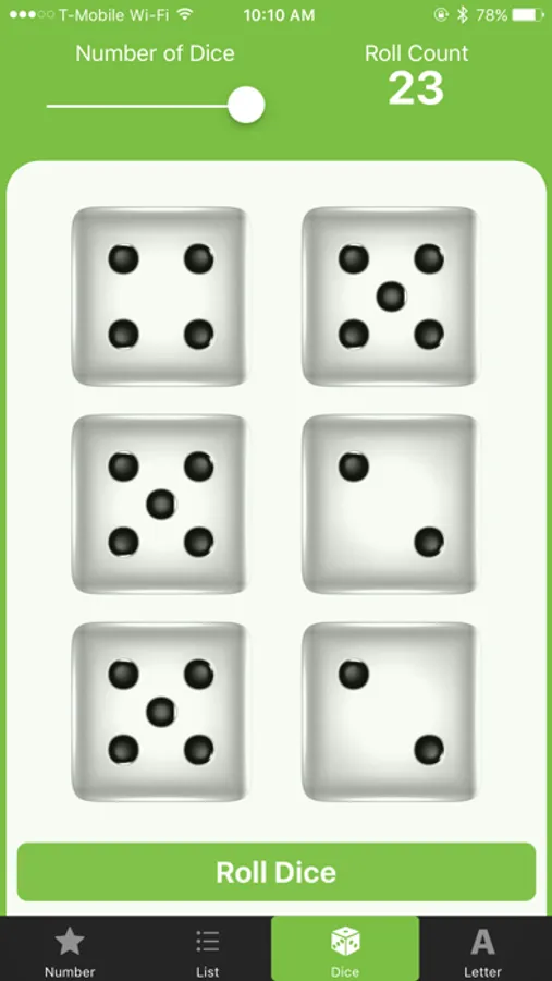 3 - Dice panel. 1 to 6 dice. Shake to roll.