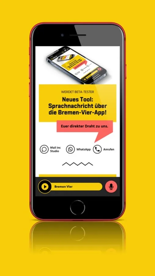 Digitalradio zum Mitnehmen - die Bremen-Vier-App macht's möglich! Egal, wo ihr gerade unterwegs seid, könnt ihr euch ganz bequem in unseren Live-Stream klicken. Die App liefert die aktuellen Musiktitel-Infos, ihr könnt an Programmaktionen teilnehmen und Musikscout werden. Mit im App-Paket sind außerdem die neuesten Nachrichten aus der Region und die aktuellen Stau- und Blitzermeldungen.