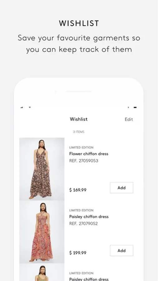 Now, your Wishlist, in a single click: include all the garments you like most in your Wishlist. Also, if you didn't manage to buy a garment in time, you can enable an availability notification. Simply enter your e-mail and you’ll receive a message as soon as it’s back in stock.