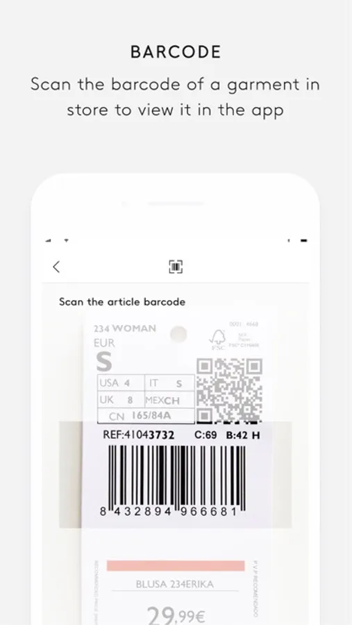 You can also use the app when you are shopping in our physical stores. If you see an item you want to buy but there are none left in your size or preferred colour, you can get it via our app. Scan the barcode of the item, or enter it manually, to see where you can find one or to buy it online. Once you have placed the order, you can receive it at home or at your preferred location.