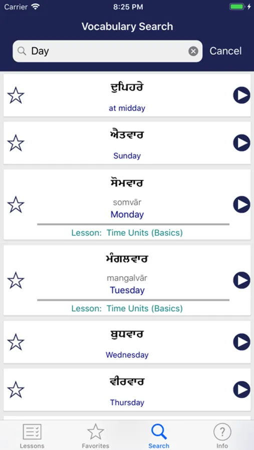 Several topics feature each several lessons to teach you the Gurmukhi letters, numbers, words and phrases to get you started understanding and speaking Punjabi. Native speakers provide pronunciation help.