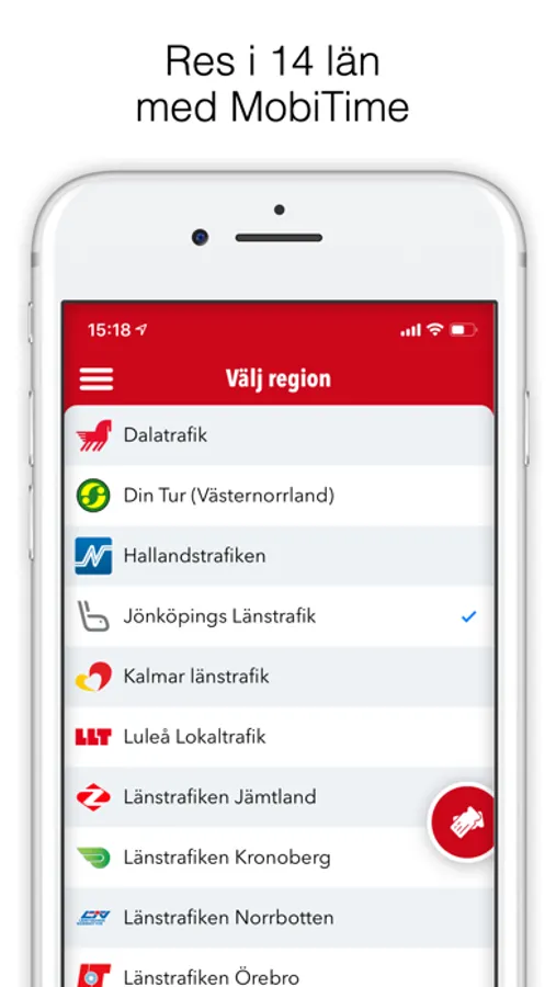 Funktionen "Res i annat län" gör det möjligt att resa i 14 län med samma app.