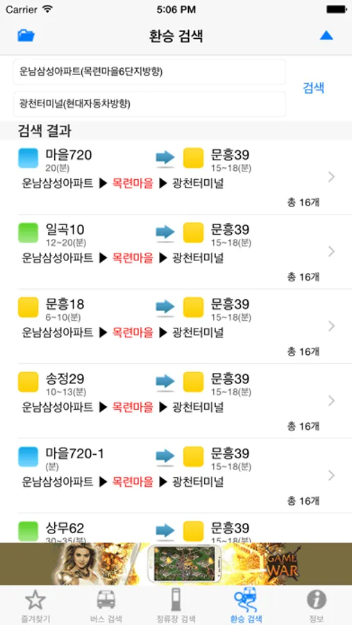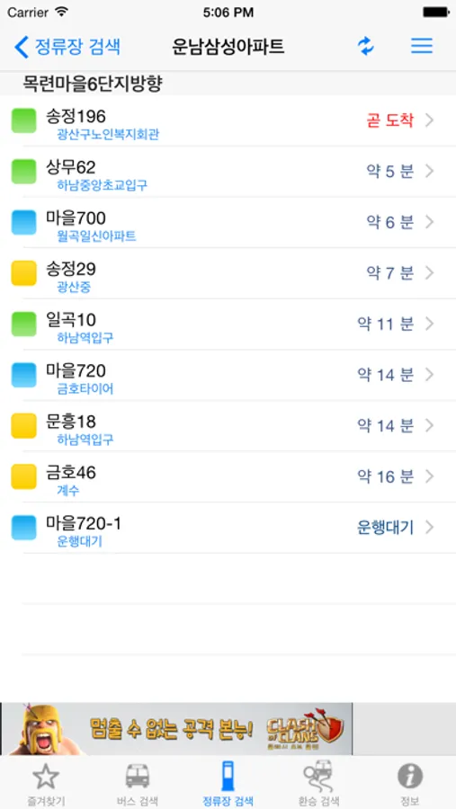 - 광주 시내버스 도착정보 서비스 어플입니다.