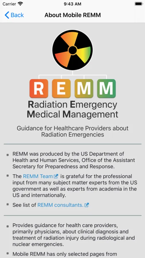Mobile REMM has key selected pages from REMM online, including:
