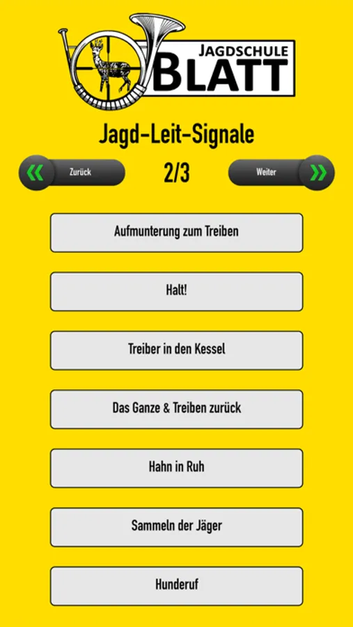 Dieses App ist auch für Jäger, Jungjäger und angehende Jungjäger empfehlenswert, um sich die wichtigsten bzw. Prüfungsrelevanten Jagdsignale noch mal zu verinnerlichen.