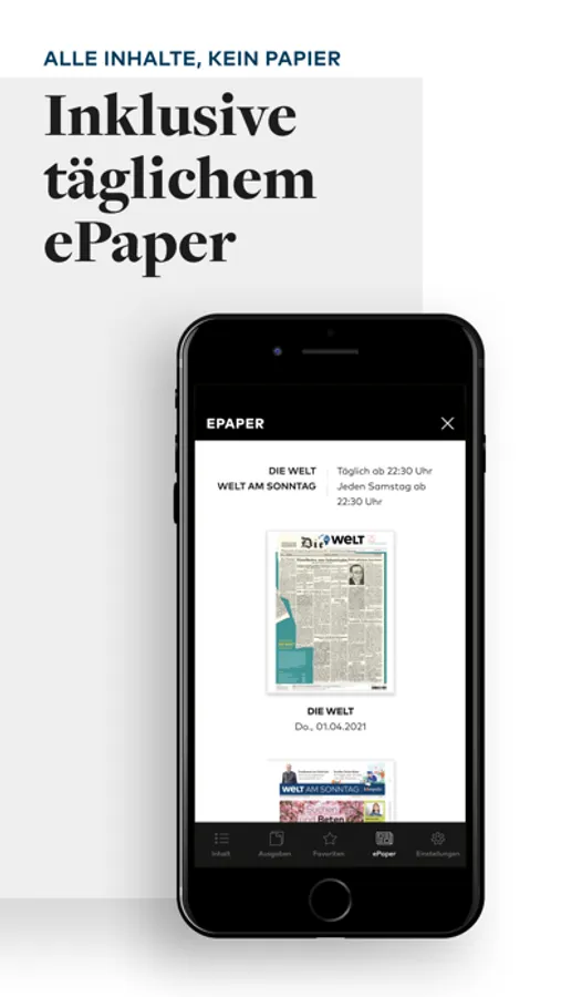 • Inklusive des E-Papers der WELT und der WELT AM SONNTAG im originalen Layout