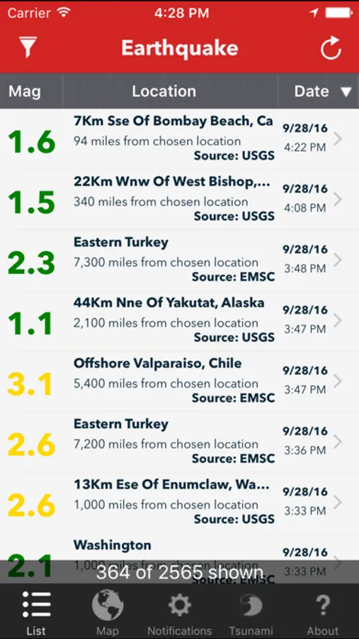 * Fine Tuned Earthquake Filtering by Data Source, Magnitude, Distance, Time