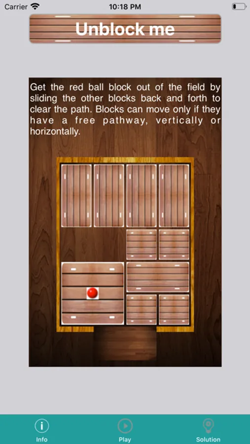 Get the red ball block out of the field by sliding the other blocks back and forth to clear the path. Blocks can move only if they have a free pathway, vertically or horizontally.