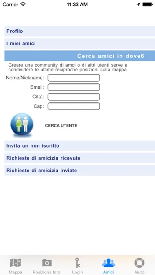 Una volta effettuata la registrazione la App accederà direttamente al sito web per mostrarti la poszione degli amici ovunque ti trovi.