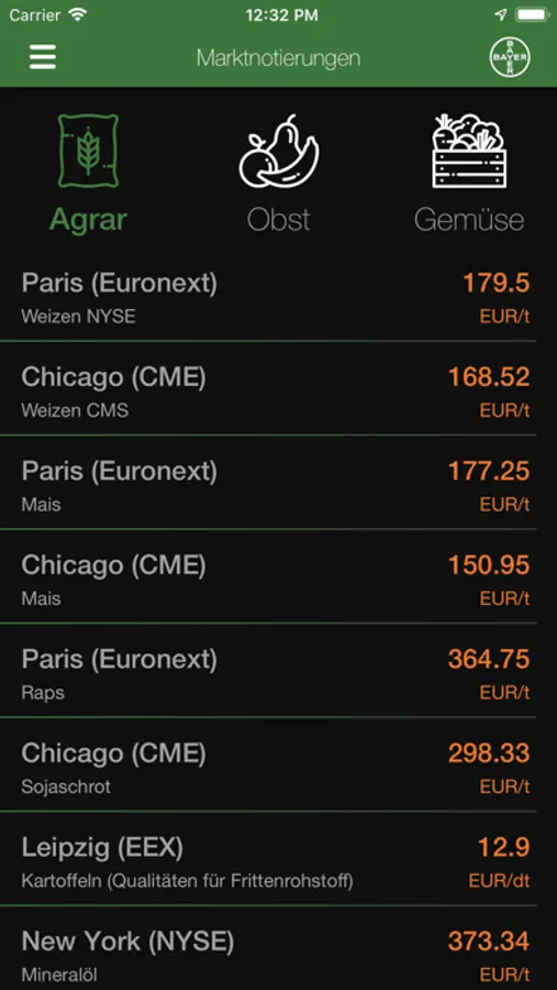 * immer aktuelle Marktpreise aus der Landwirtschaft