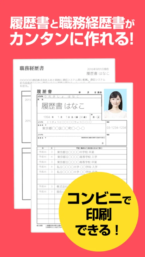"そして、入力した履歴書・職務経歴書は近くのコンビニで印刷できるため、面接直前でも安心!
