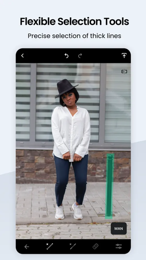 If the task is to erase a line from your pic, mark only a section of the line or just tap it to remove it completely; no need to be precise — the app will find the line! In the manual retouch mode, all lines have control points, thus giving you more control and flexibility over adjusting curved segments.