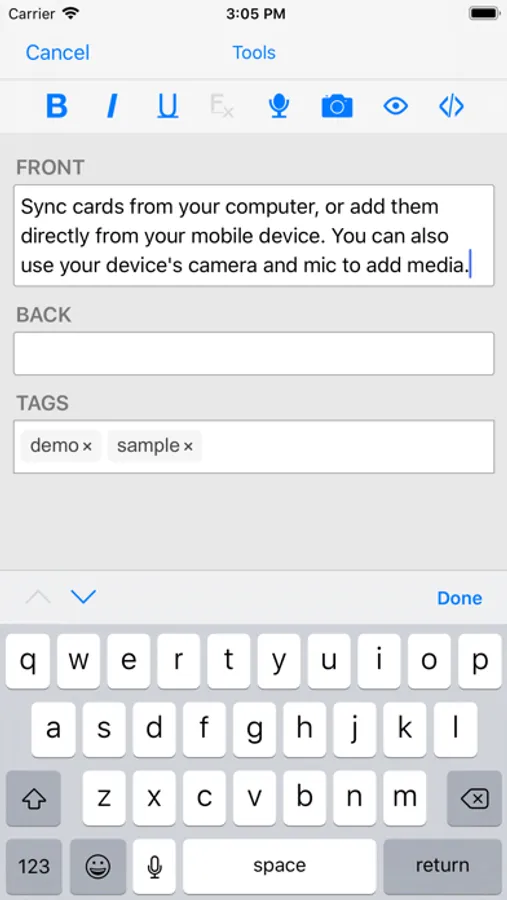 - If your cards use images or audio clips, the media is stored on your device, so you can study without an internet connection.