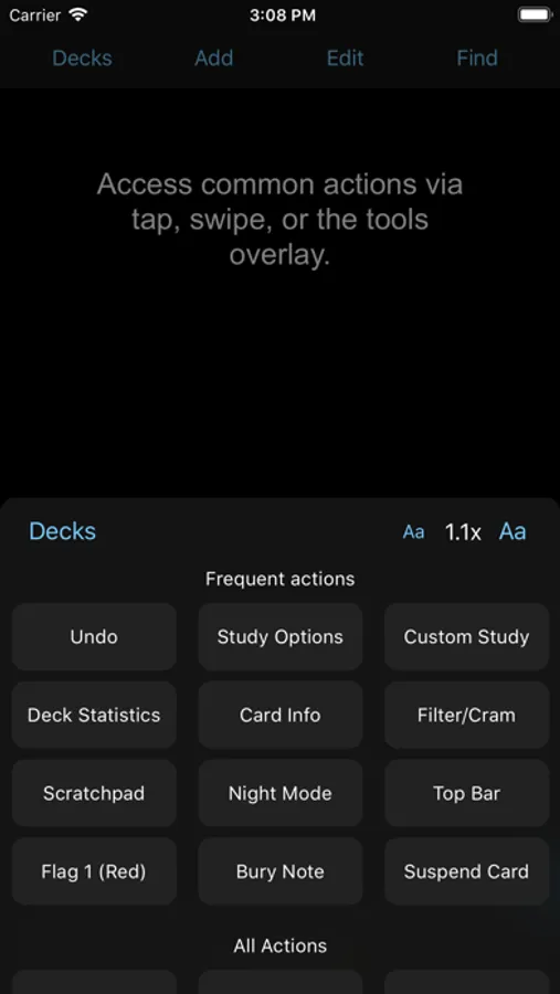 - A flexible interface designed for smooth and efficient study. You can set up AnkiMobile to perform different actions when you tap or swipe on various parts of the screen, and control which actions appear on the tool buttons.