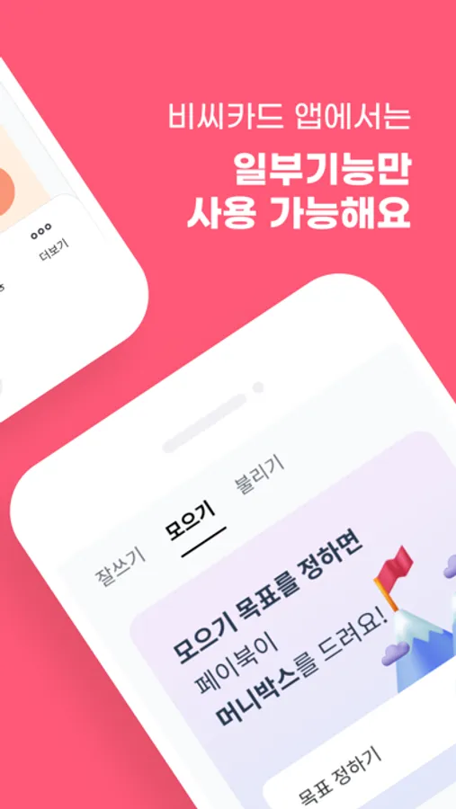 비씨카드 앱은 일부 기능만 제한적으로 사용할 수 있으며, 향후에는 페이북을 중심으로 더 많은 혜택과 편리한 서비스를 제공 드릴 계획입니다.