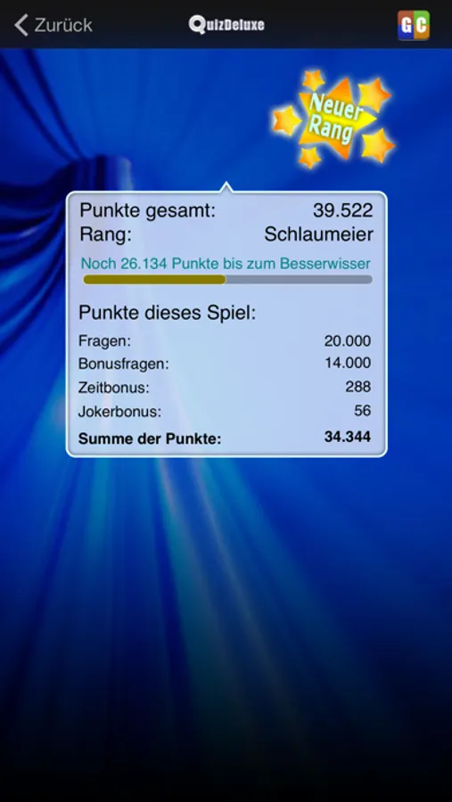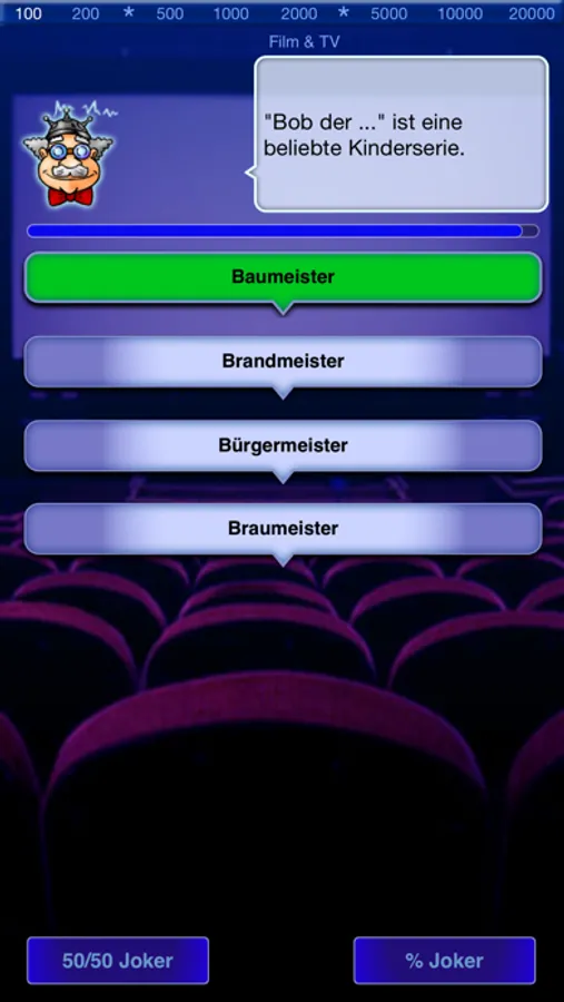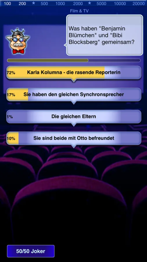 Ein Frage-Antwort-Quiz, in dem pro Runde mit zehn Fragen dein Wissen getestet wird. Von den vier Antworten ist nur eine richtig, wobei dir ein 50/50- und Statistik-Joker helfen. Zwei Bonusfragen pro Runde geben dir eventuelle Extrapunkte.