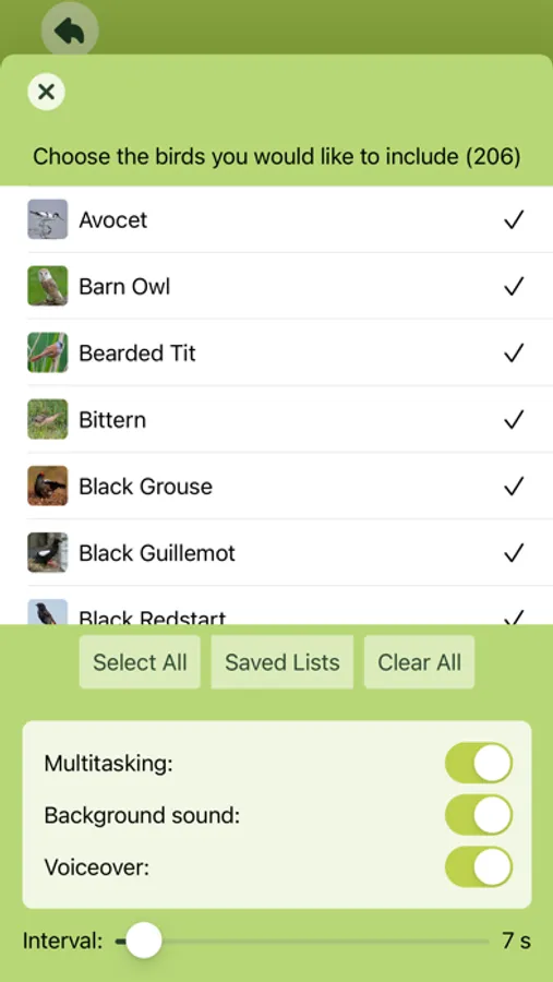 The slideshow section can be used as a way to relax, or switch the voiceover on and see if you can say the name of the bird before the voiceover. This is a good way of competing with the family - who can say the name of the bird first?!