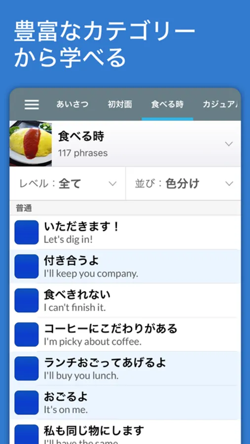● 全フレーズに例文、コメント、音声付き