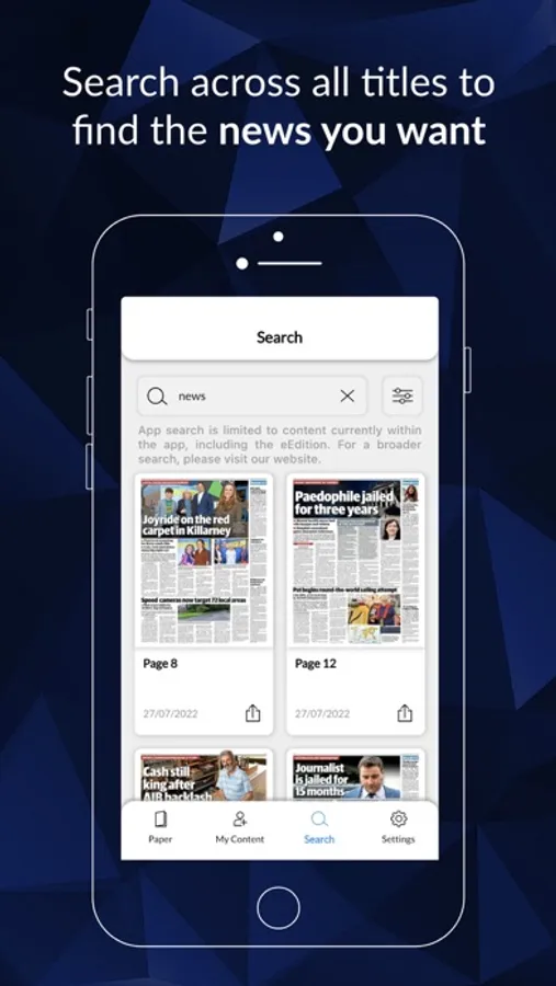 You can also look up any topic, person, place or event instantly, if you simply can’t wait to get to the news you want to read. Browse through pages, zoom in to take a closer look at any photograph, or search the digital archive for previous reports, stories and photographs.