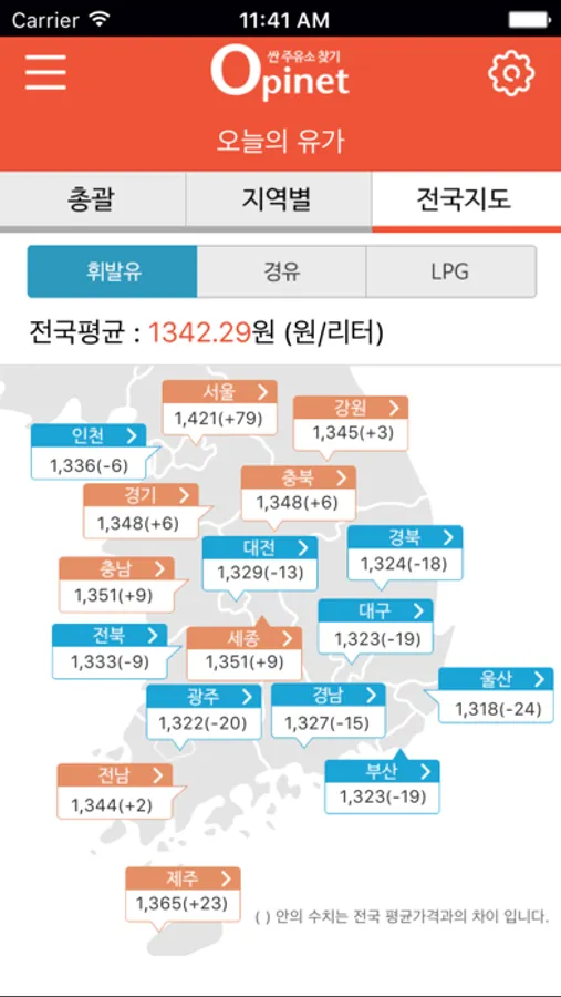 오피넷 웹 사이트(www.opinet.co.kr )에서 제공하는 전국 주유소(충전소)의 판매가격정보를 스마트폰에서도 동일하게 이용하실 수 있습니다.