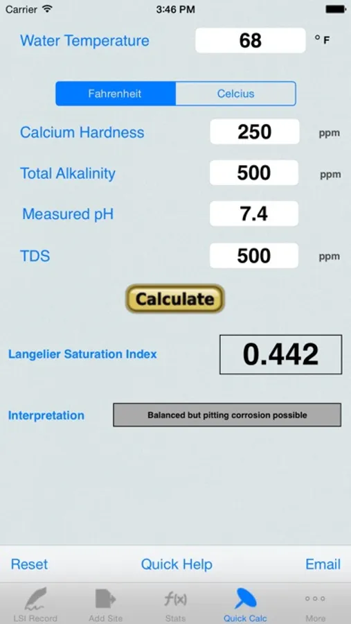 Also, water temperature can be entered as Fahrenheit or Celsius.