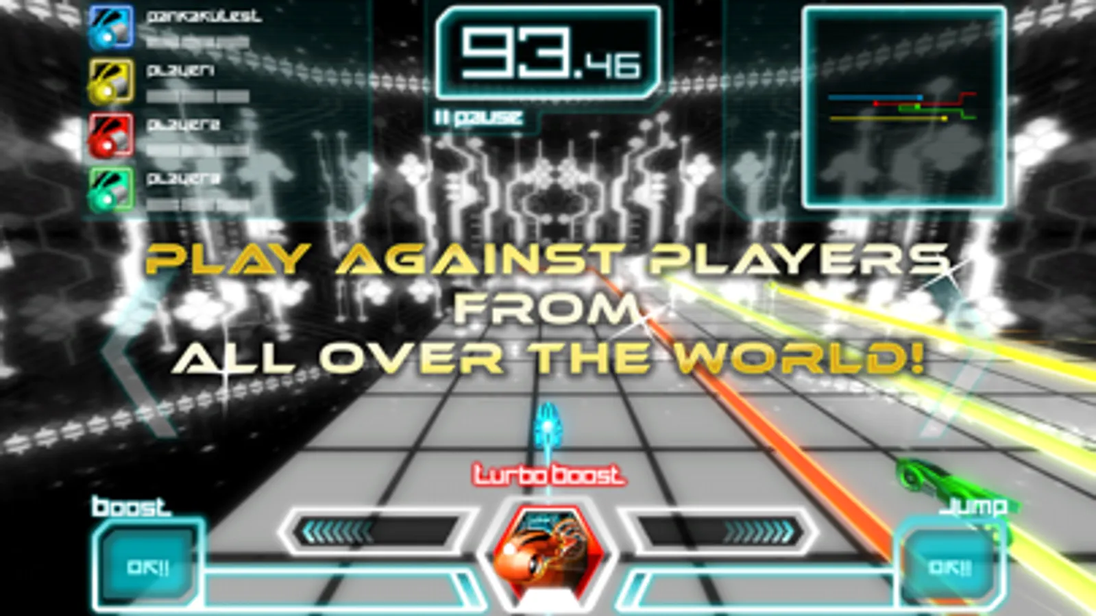 Drive through the cyber space as fast as the light, and have dead heat battles with opponents all over the world!