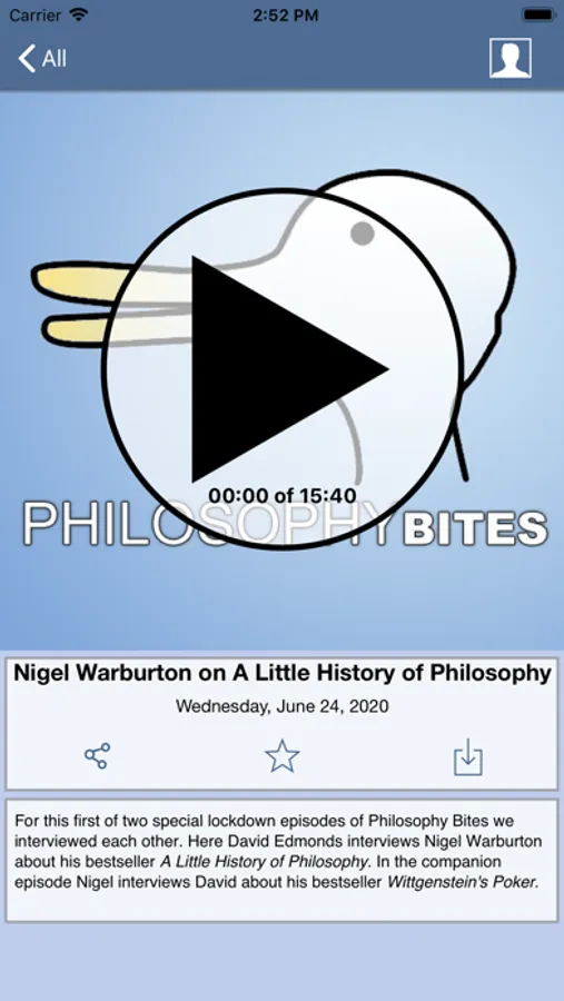 This is the most convenient way to access Philosophy Bites on your iPhone, iPod Touch, iPad. You're always connected to the latest episode. Instant access, just touch and play!