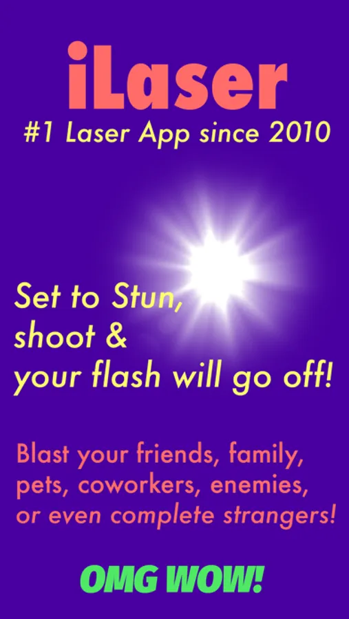 iLaser is the only laser app featuring real-time stun flashing- make sure to 'set to stun' and your device's flash will go off to perplex all of your enemies!