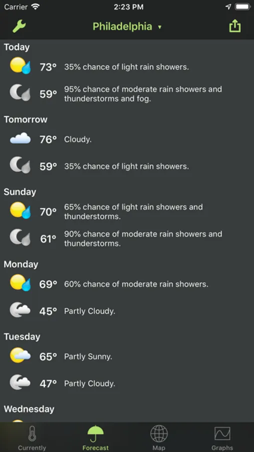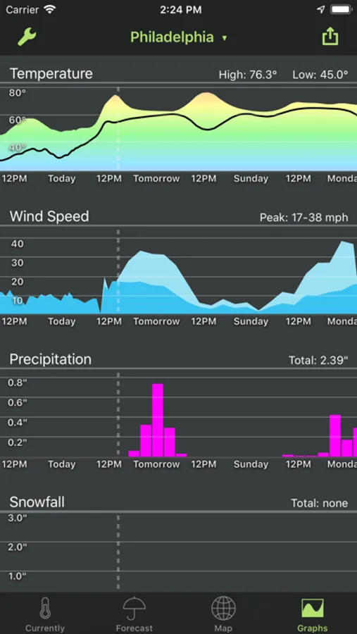 • Graphs for 10 weather variables including temperature, wind speed, precipitation, cloud cover and more…
