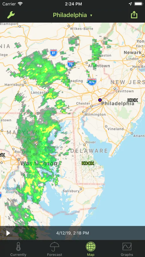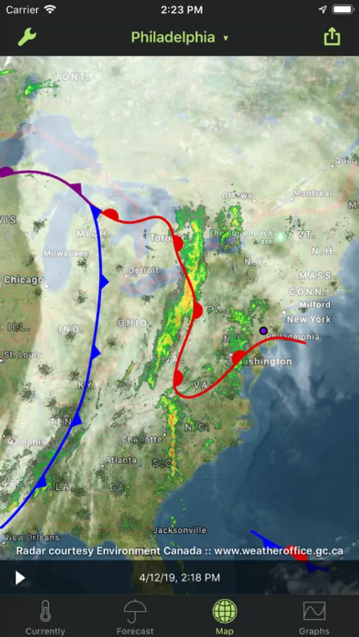 • Animated map with radar imagery in the US, Canada, and Australia; and infrared satellite imagery worldwide.