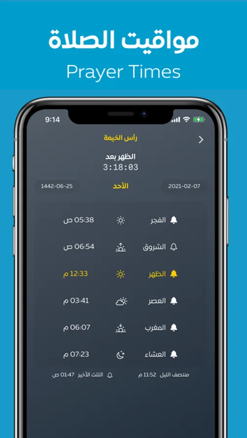 عرض الصلاة القادمة أو التاريخ الهجري في واجهة الساعة