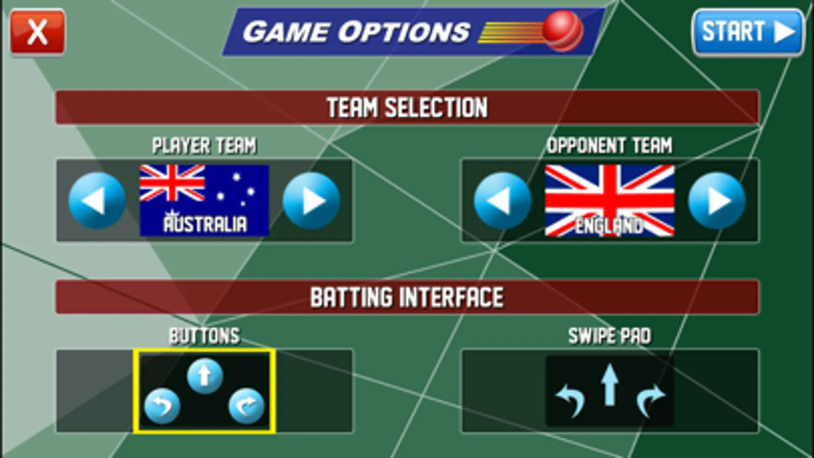 Interface options - A choice of conventional control buttons as well as option to "swipe" your batting shots. These controls can be positioned on either side of the screen depending on your preference for a left-handed or right-handed layout.