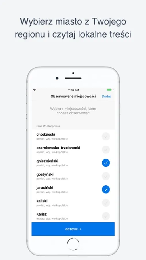 • Wygoda! Wybierz miejscowości, które chcesz obserwować, aby szybko dostać aktualności i informacje lokalne