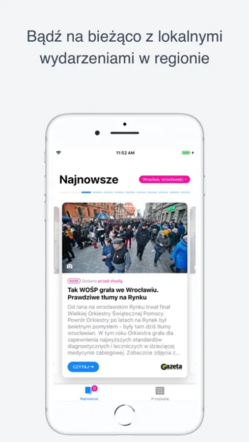 Aplikacja skierowana jest głównie do mieszkańców Wrocławia, Nowego Dworu i okolic. Skupiona jest na najważniejszych wydarzeniach lokalnych i regionalnych, przygotowywanych przez zespół redakcyjny Gazety Wrocławskiej. W aplikacji znajdziesz też zdjęcia, wideo i komentarze. Publikujemy zapowiedzi i relacje z odbywających się imprez. Portal wyjaśnia i opiniuje, pomaga, tworzy przestrzeń do dyskusji.
