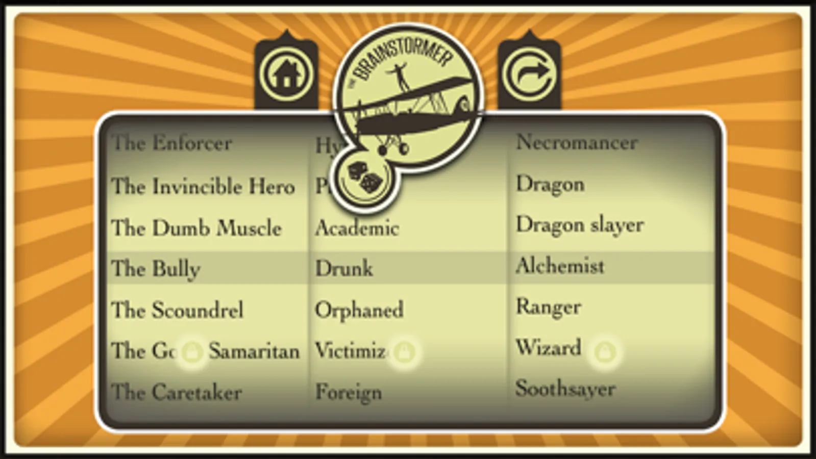 "Next time you're fresh out of ideas, give the wheels of Brainstormer a spin."
