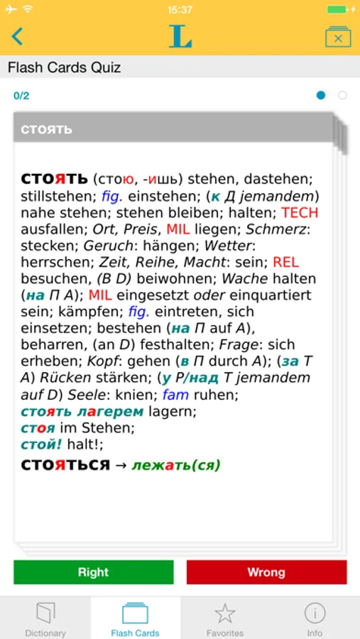 250,000 headwords, phrases and translations. Russian - German. German - Russian. Use offline – even abroad. The ideal dictionary app for work, study, travel and everyday situations. Available with free vocabulary trainer. Millions of users can't be wrong! From the No. 1 dictionary publisher.*