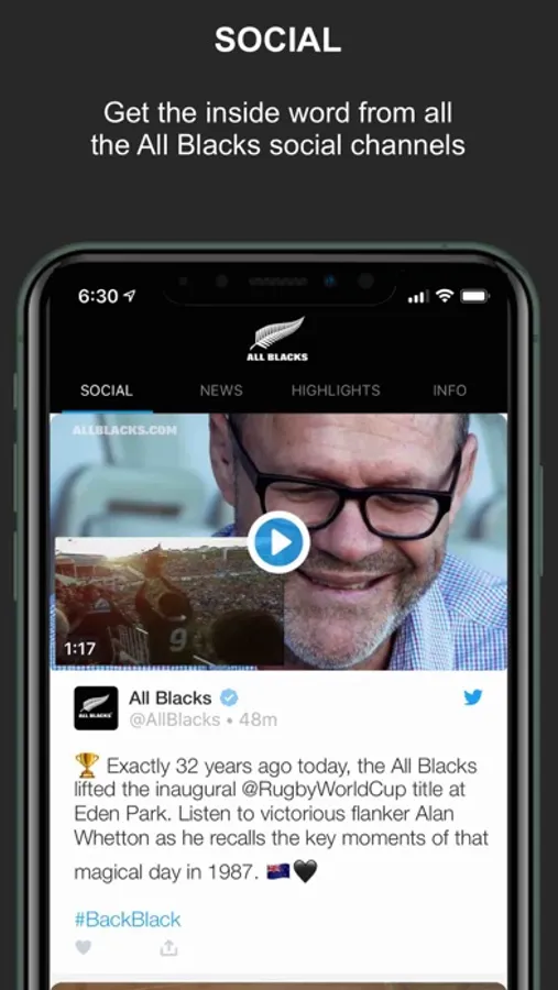 Welcome to the Official All Blacks App for iOS. An App fit for the Rugby World Champions that brings you closer to the team and the world of Rugby Union.