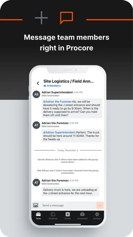 Procore Conversations provides a convenient way for stakeholders across office and field teams to communicate right in Procore. You can privately message others with direct messages, start conversations on project items, or create groups to discuss various project topics.