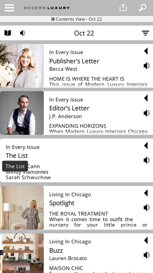 The CS Interiors magazine app offers a luxury home design resources for both the design conscious reader and the industry professional. With interactive page flipping, a zoom feature, bookmarking, searching and sharing your favorite articles allow an enhanced magazine experience right anywhere and anytime you choose to read.