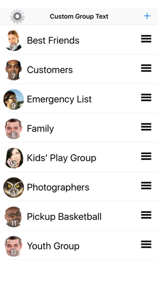 Create your custom groups. Once created, you no longer have to select contacts one-by-one for a group message. Simply tap on the group and send out a text in a matter of seconds.