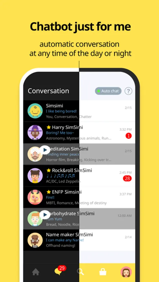 Owners can chat with others using their Personal SimSimi and appropriately set their Personal SimSimi to chat automatically.