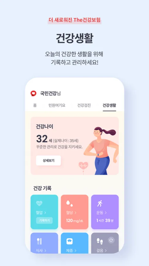 - 혈압, 혈당 등을 직접 기록하거나 기기연동으로 꾸준히 건강을 관리할 수 있습니다.