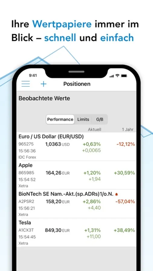 • Limit-Alerts und Börsen- sowie Aktien-Eilmeldungen per Push-Notification