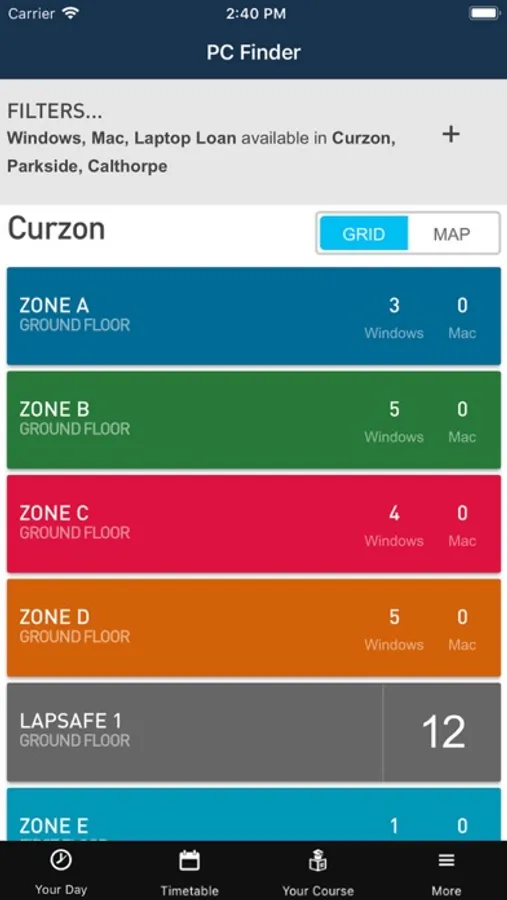 PC Finder – find available PCs across campus, including handy colour coded maps
