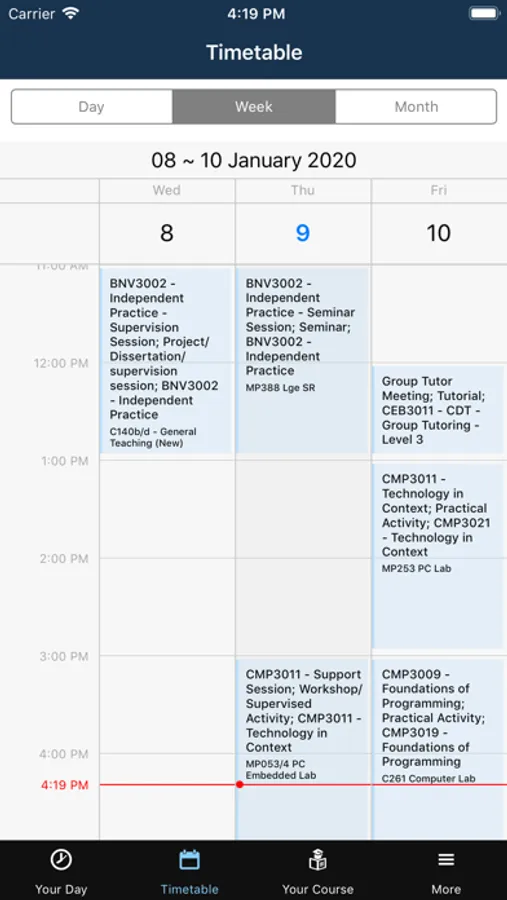 Timetable - always know where you need to be
