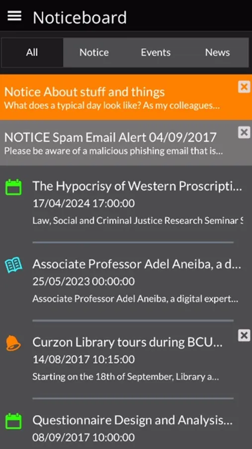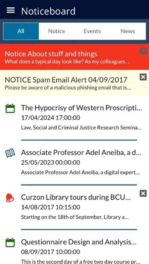 Noticeboard – view all your notices, news, events and subscribed feeds on the go