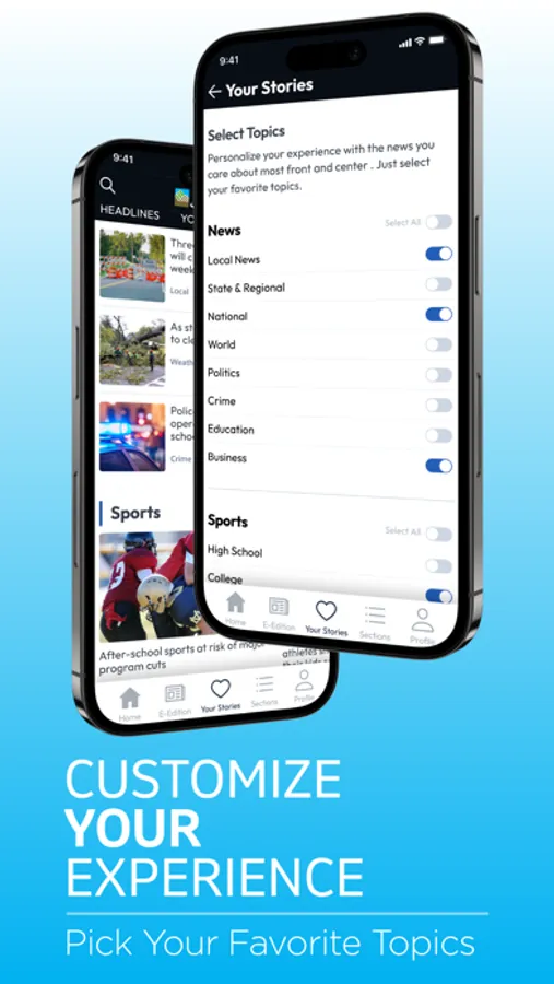 * Your Stories – personalize your experience by selecting the local news topics that matter most to you