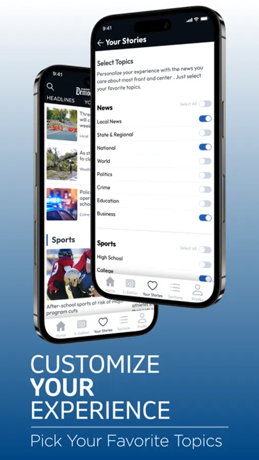* Your Stories – personalize your experience by selecting the news topics that matter most to you