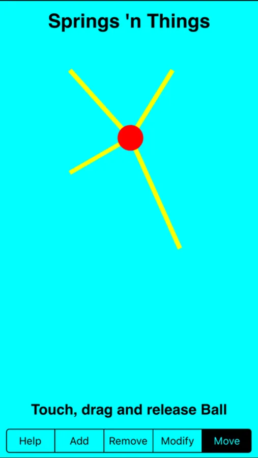 Springs ‘n Things is an entertaining demonstration application and educational display for the iPhone/iPad. It simulates the dynamics of up to four springs connected to a moveable ball. Touch, drag and release the ball to see it bounce around. The length and stiffness of the springs can be individually adjusted. One of the springs can be transformed into a fixed spring or a pendulum. The ball can be made to respond to the tilting and shaking motions of the iPhone/iPad. The motion of the ball can be perpetual or it can be slowed by spring resistance by viscous damping as if it were moving in air or water.