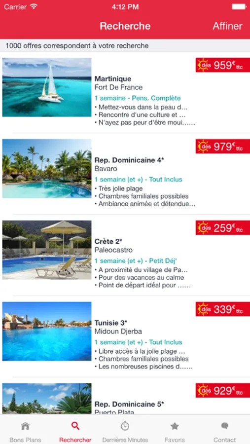 - Accédez désormais à des milliers d'offres de séjours aux prix les plus bas.